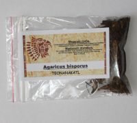 Вид: Шампиньон двуспоровый (Agaricus bisporus) Род: Шампиньон, или Агарикус (Agaricus) Семейство: Шампиньоновые, или Агариковые (Agaricaceae) Порядок: Пластинчатые, или Агариковые (Agaricales) Класс: Базидиомицеты (Basidiomycetes) Отдел: Грибы (Mycota) Agaricus bisporus Шляпка плодовых тел шампиньона двуспорового у молодых экземпляров шарообразная, потом полукруглая, выпуклая, края шляпки завернуты вниз и соединены с ножкой рыхлой тканью (частным покрывалом). По мере созревания края шляпки расправляются, частное покрывало разрывается и обнажается спороносный слой (гимений). Окраска поверхности шляпки колеблется от белой до насыщенно коричневой с различными оттенками даже у плодовых тел на одном и том же мицелии. Поверхность шляпки может быть гладкой или чешуйчатой, от нажатия она темнеет. Ножка толстая, гладкая, цилиндрическая, со слегка утолщенным основанием, мясистая, иногда полая. Кольцо после разрыва частного покрывала широкое и располагается около середины ножки. Пластинки очень частые, приросшие к ножке, довольно высокие и тонкие. Молодые пластинки розового цвета, по мере созревания спор становятся темно — коричневыми с фиолетовым оттенком. Мякоть белая, плотная, сочная, на изломе розовеет или краснеет, у созревших шампиньонов имеет ярко выраженный запах и грибной вкус. В природных условиях дикорастущий двуспоровый шампиньон встречается не часто. Он растет обычно большими группами в хорошо унавоженных местах, в огородах, садах, на компостных кучах, пастбищах. Так как основным субстратом для шампиньона является компостированный навоз, в искусственной культуре для него создаются более благоприятные условия. Шампиньон двуспоровый в природе имеет две разновидности: белую и бурую или коричневую. В культуре внутри вида Агарикус биспорус выделяют четыре отличающиеся друг от друга группы штаммов: `белые штаммы`, `кремовые штаммы`, `гибридные штаммы`, то есть гибриды, полученные от белых и кремовых штаммов, и `коричневые штаммы`. Белые штаммы характеризуются белыми плодовыми телами, гладкими, часто шелковистыми шляпками без чешуек. Грибы относительно малы и имеют небольшой средний вес, около 4 — 8 грамм. Чаще всего эти штаммы выращивают для сбыта в свежем виде, грибы собирают с полностью закрытыми шляпками. Кремовые штаммы, их также называют «промежуточными», унаследовали черты и белых и коричневых видов. У них белые шляпки, но они гораздо большего размера, как и коричневые штаммы, (средний вес гриба 8 — 12 грамм), а также имеют чешуйки. Часто чешуйки бывают коричневого цвета. Они высокоурожайны и удобны для механического сбора и консервирования. Но у них есть недостаток: пластинки открытых (созревших) грибов приобретают темно-коричневый цвет, благодаря этому при консервировании все остальные грибы становятся темного цвета и выглядят непривлекательно. Гибридные штаммы были получены в результате скрещивания белых и кремовых штаммов, они имеют лучшее качество плодовых тел и более высокую урожайность. У них белая, гладкая шляпка как у белых штаммов и толстая, короткая ножка как у кремовых. Эти шампиньоны подходят, как для сбыта в свежем виде, так и для переработки. Работая над созданием новых штаммов, селекционеры стараются передать гибридам лучшие черты их родителей. Коричневые штаммы в настоящее время выращиваются лишь в небольшом объеме. Цвет шляпок варьируется о